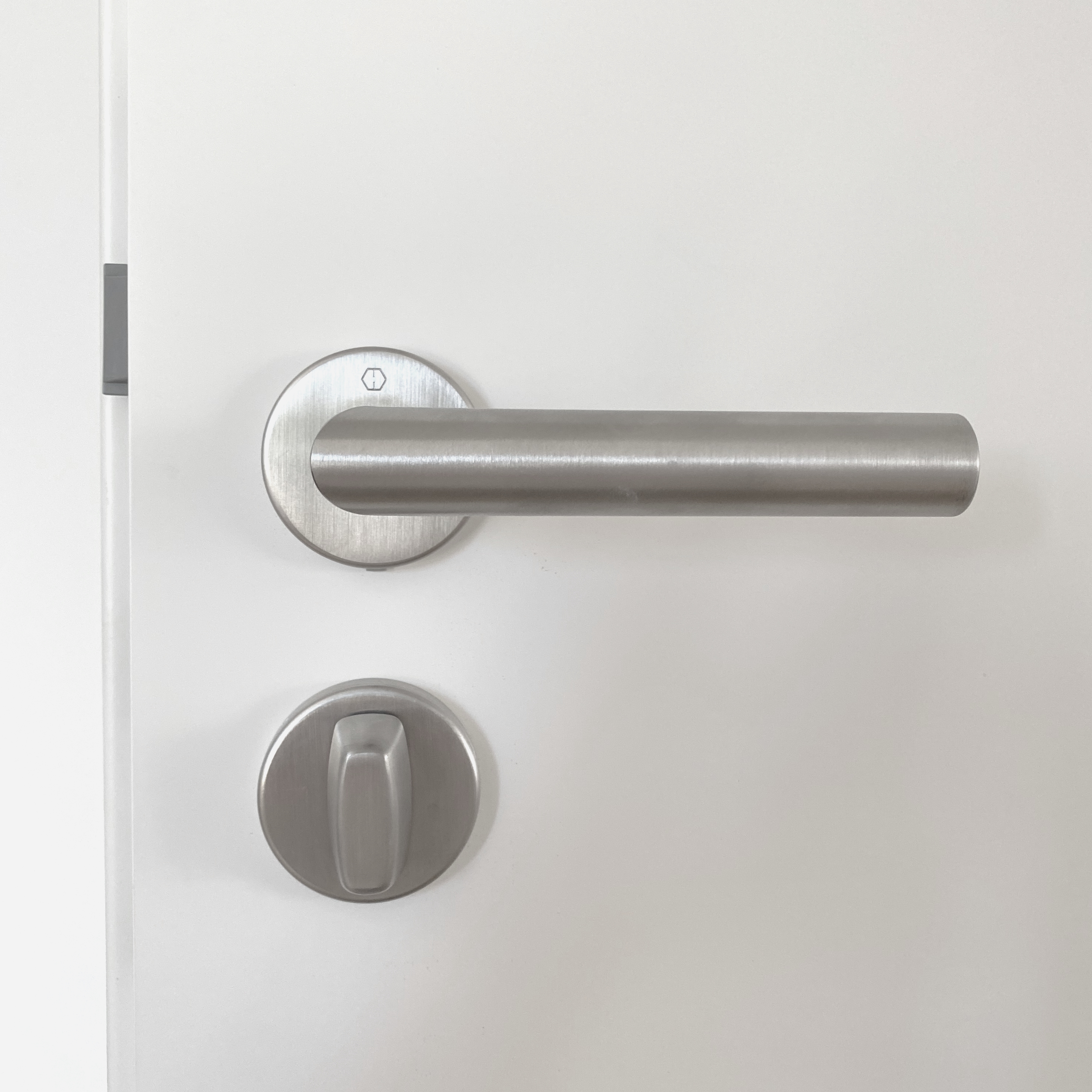 Manchmal ist es ganz gut, eine Tür hinter sich schließen zu können, ob als Abgrenzung zum privaten Bereich oder auch zwischen den Räumen. Die Ausführung der Drückergarnituren erfolgt in Aluminium. Die Holztürblätter aus Röhrenspan sind weiß lackiert und unterseitig leicht gekürzt (Unterschnitt). Bei innenliegenden Räumen ohne mechanische Entlüftung ist das Türblatt zusätzlich mit einem Lüftungsgitter versehen.